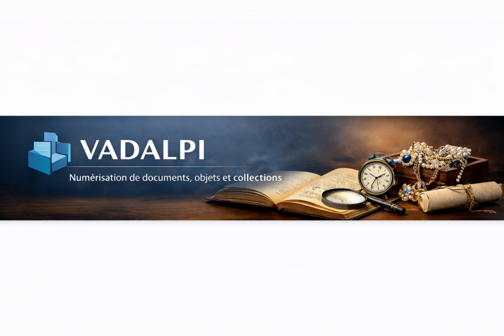 VADALPI propose des prestations de numérisation et d’inventaire visuel appliquées à des supports variés, dans un cadre rigoureux de soin, de confidentialité et de restitution des originaux.